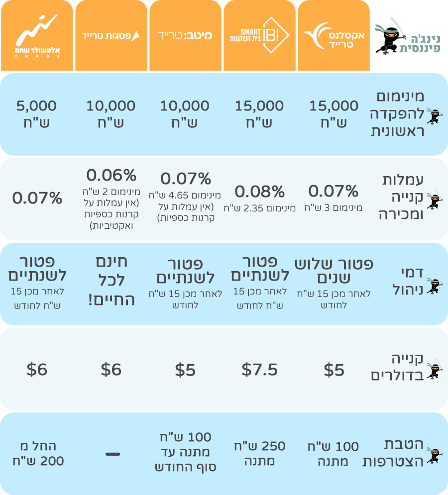באופן כללי – ההמלצה שלנו היא לפנות לכולם. בתי ההשקעות תמיד רוצים למשוך קהל חדש וישמחו להציע לכם בשיחה עוד הטבות מלבד אלו שאתם רואים כאן בנוסף להטבות שתקבלו בכניסה מהלינק שלנו.